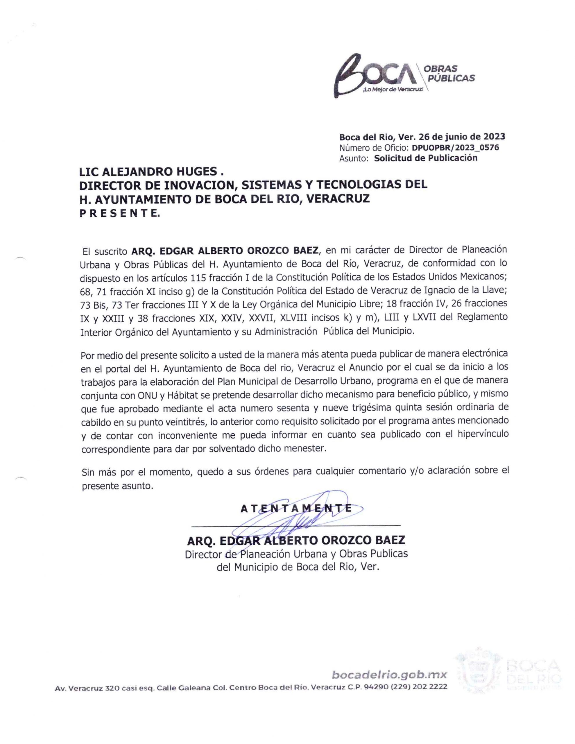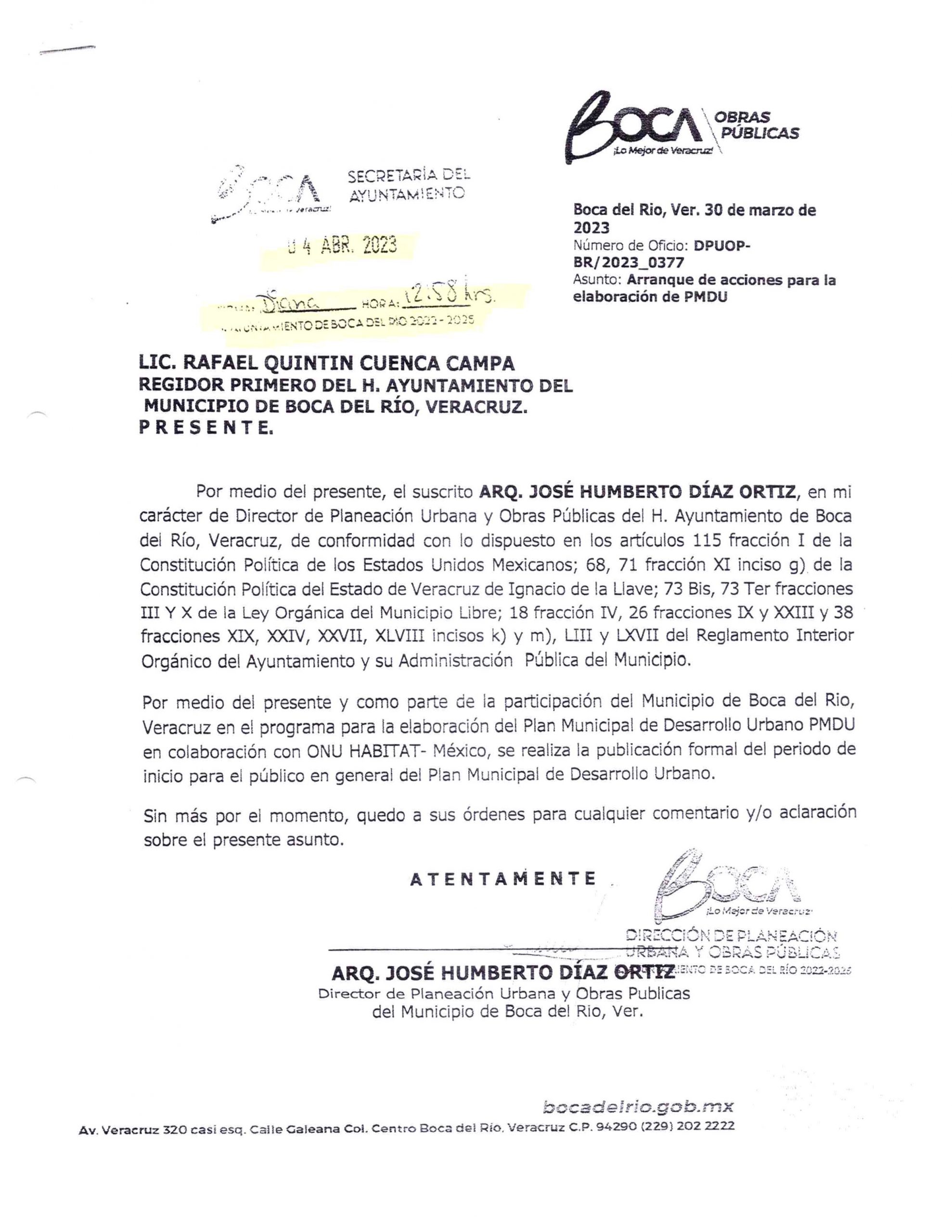 Autorización del arranque de labores para la Elaboración del Plan Municipal de Desarrollo Urbano (PMDU)