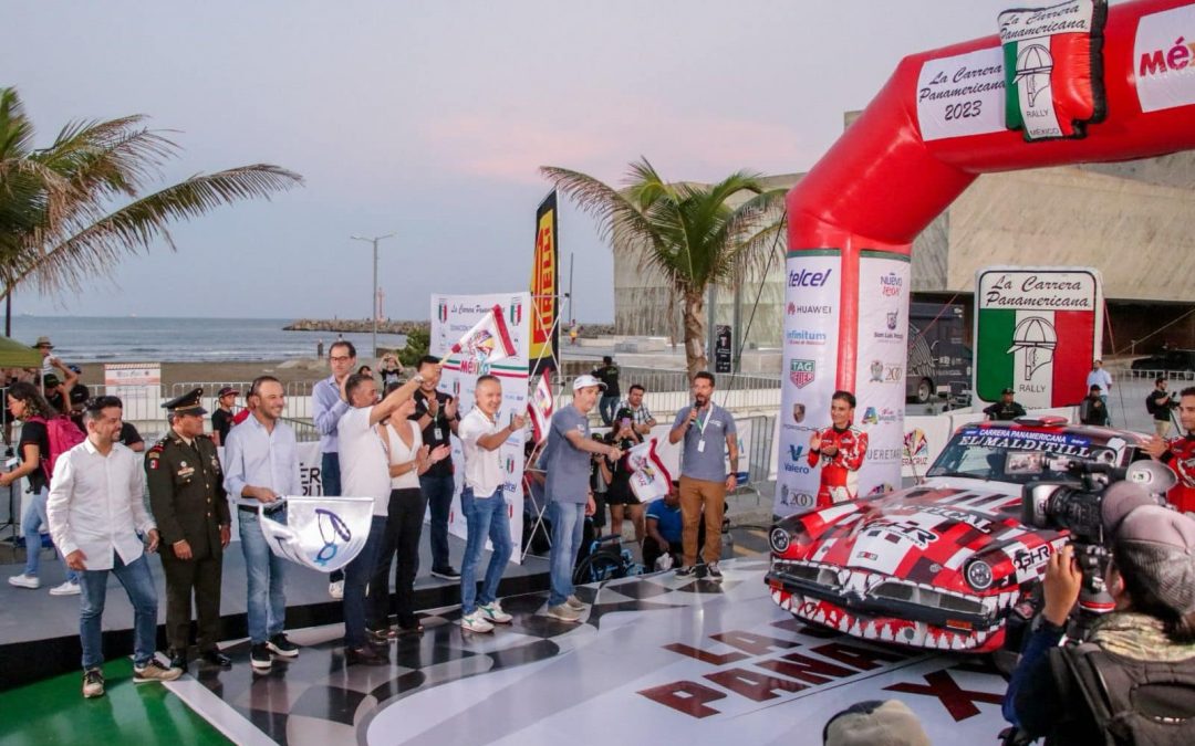 Con una emotiva ceremonia teniendo de fondo el Foro Boca y las aguas del Golfo de México, Juan Manuel Unánue Abascal, autoridades estatales y de la Carrera Panamericana dieron el banderazo de salida a los experimentados pilotos y sus poderosos automóviles.