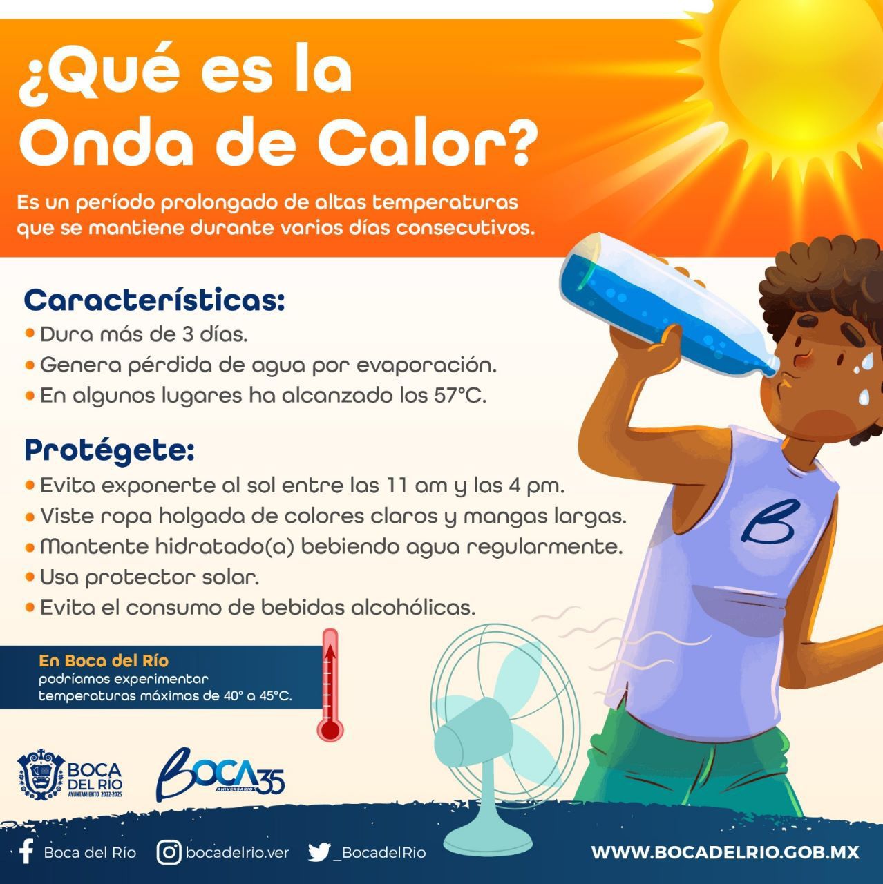 Ante el impacto de una Ola de Calor que afecta a la entidad veracruzana, el Alcalde de Boca del Río, Juan Manuel Unánue Abascal, alertó a las fuerzas de tarea municipales estar pendientes de los efectos que puedan causar en la ciudad y sus habitantes.
