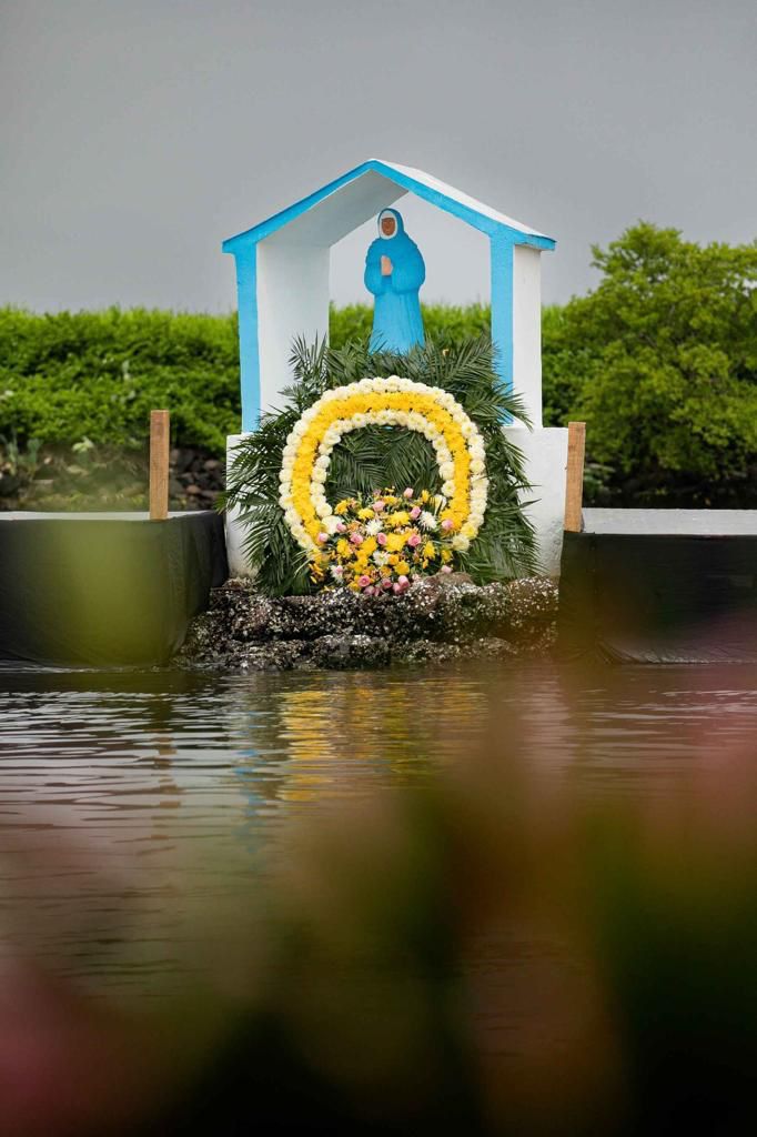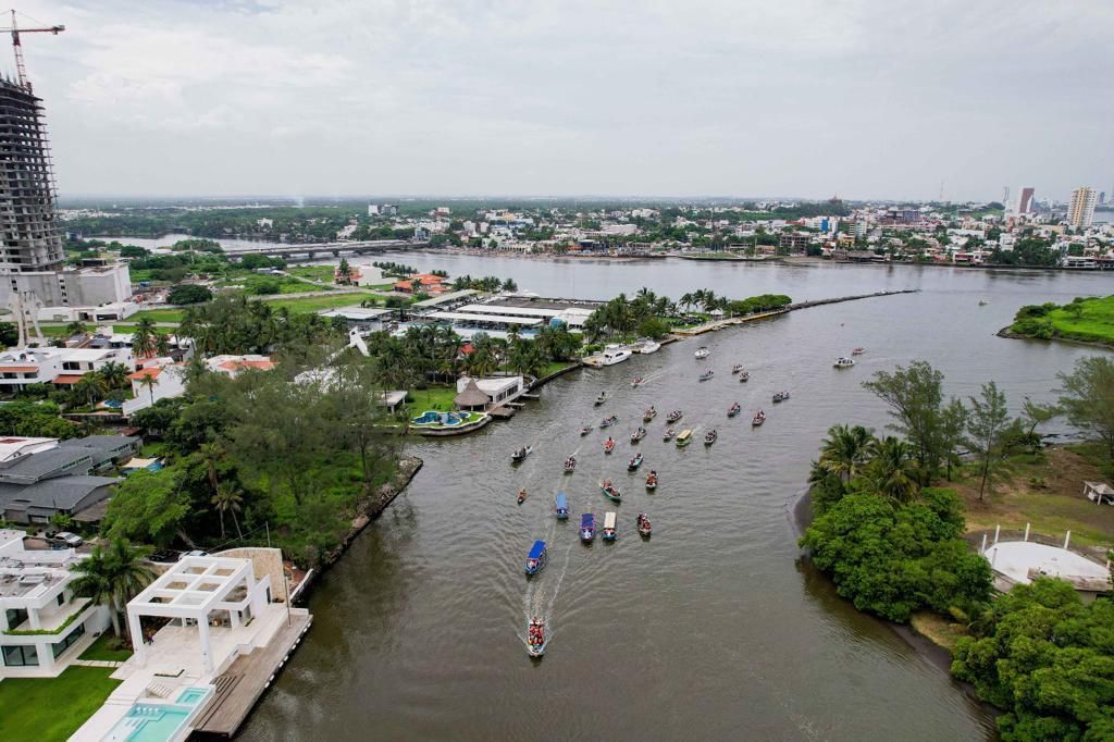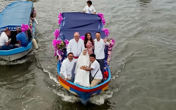 El contingente previamente se detuvo frente al islote donde se encuentra una representación de la Patrona de los boqueños, para dejar una ofrenda floral en espera de una buena temporada de pesca y su protección al municipio.