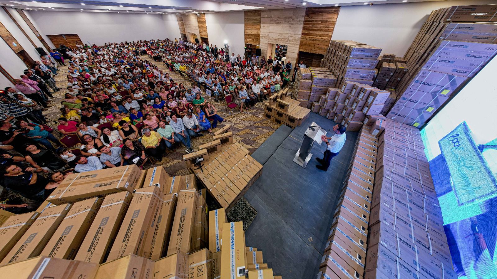 “Me da mucho gusto entregar 220 aires acondicionados y 220 computadoras a 110 escuelas preescolares, primarias, secundarias y bachilleratos como parte del reconocimiento que hoy hacemos al esfuerzo que ponen todos los días dentro de sus aulas”, expresó el edil.