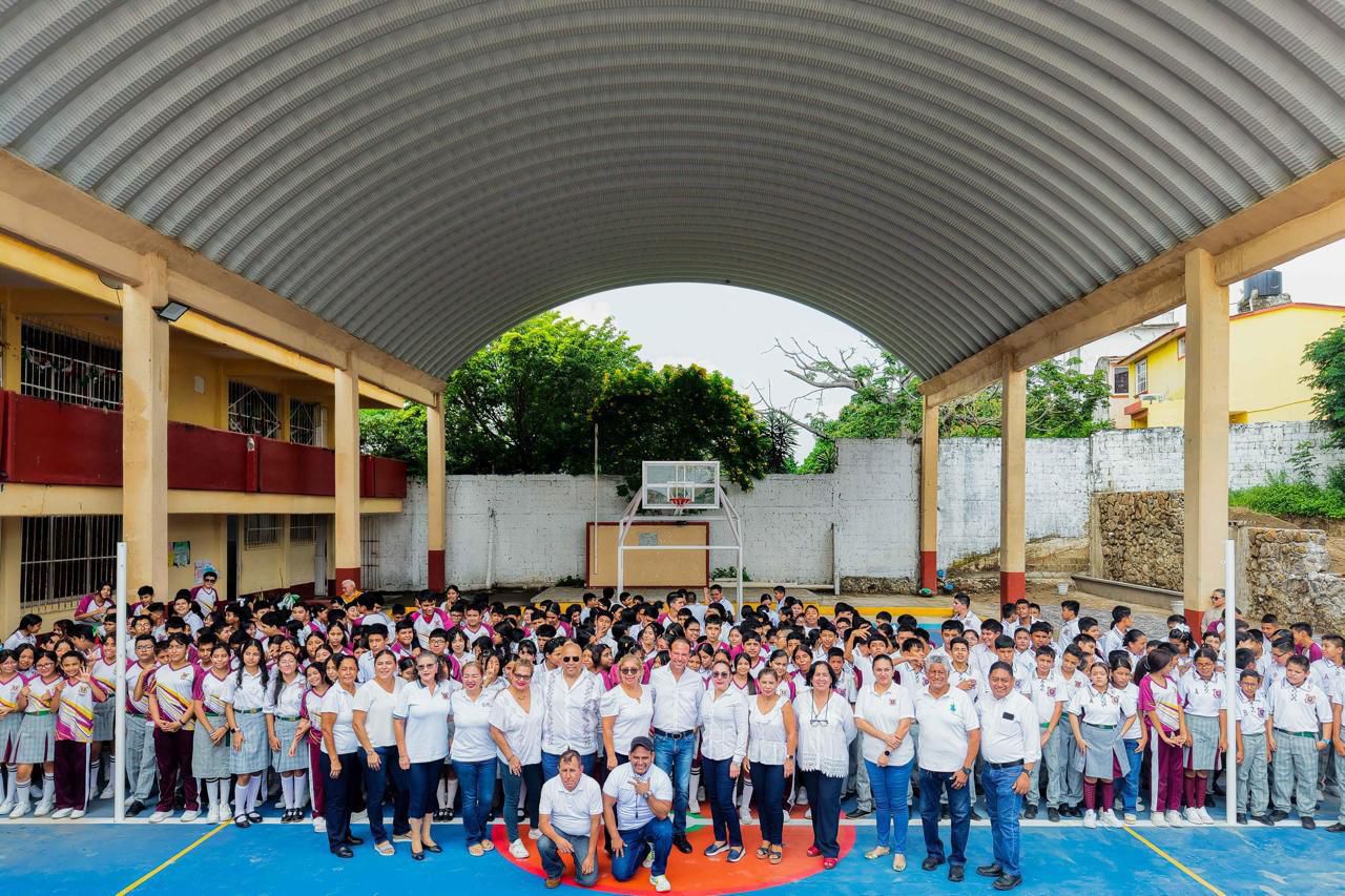 La comunidad de la Secundaria General 6 Belisario Domínguez, agradeció al alcalde de Boca del Río, Juan Manuel Unánue Abascal, por la rehabilitación de su cancha de usos múltiples, logrando así un espacio digno para el uso y disfrute de estudiantes, personal docente y padres de familia.