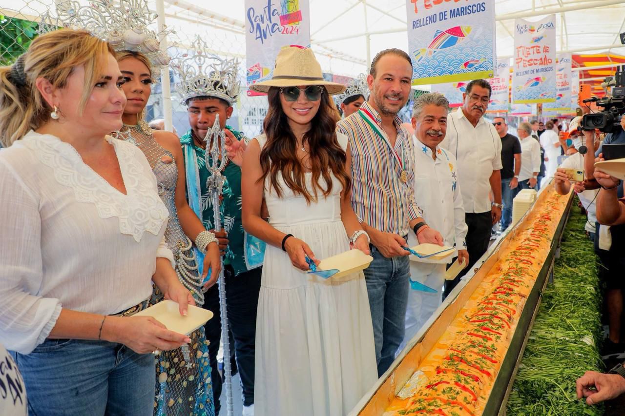 El Alcalde de Boca del Río, Juan Manuel Unánue Abascal, encabezó el tradicional corte de listón del Filete de relleno de Mariscos más grande del mundo y así dar paso a los más de 6 mil asistentes para su degustación.